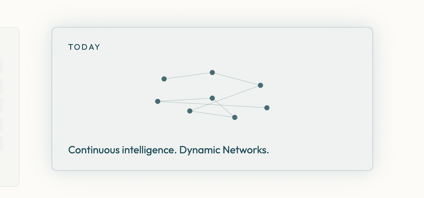 It sits above your existing tools, email, calendar, notes, CRM, and creates a persistent, navigable memory of your network. Not a database you maintain. A living context layer that works invisibly in the background, compounding in value with every interaction.